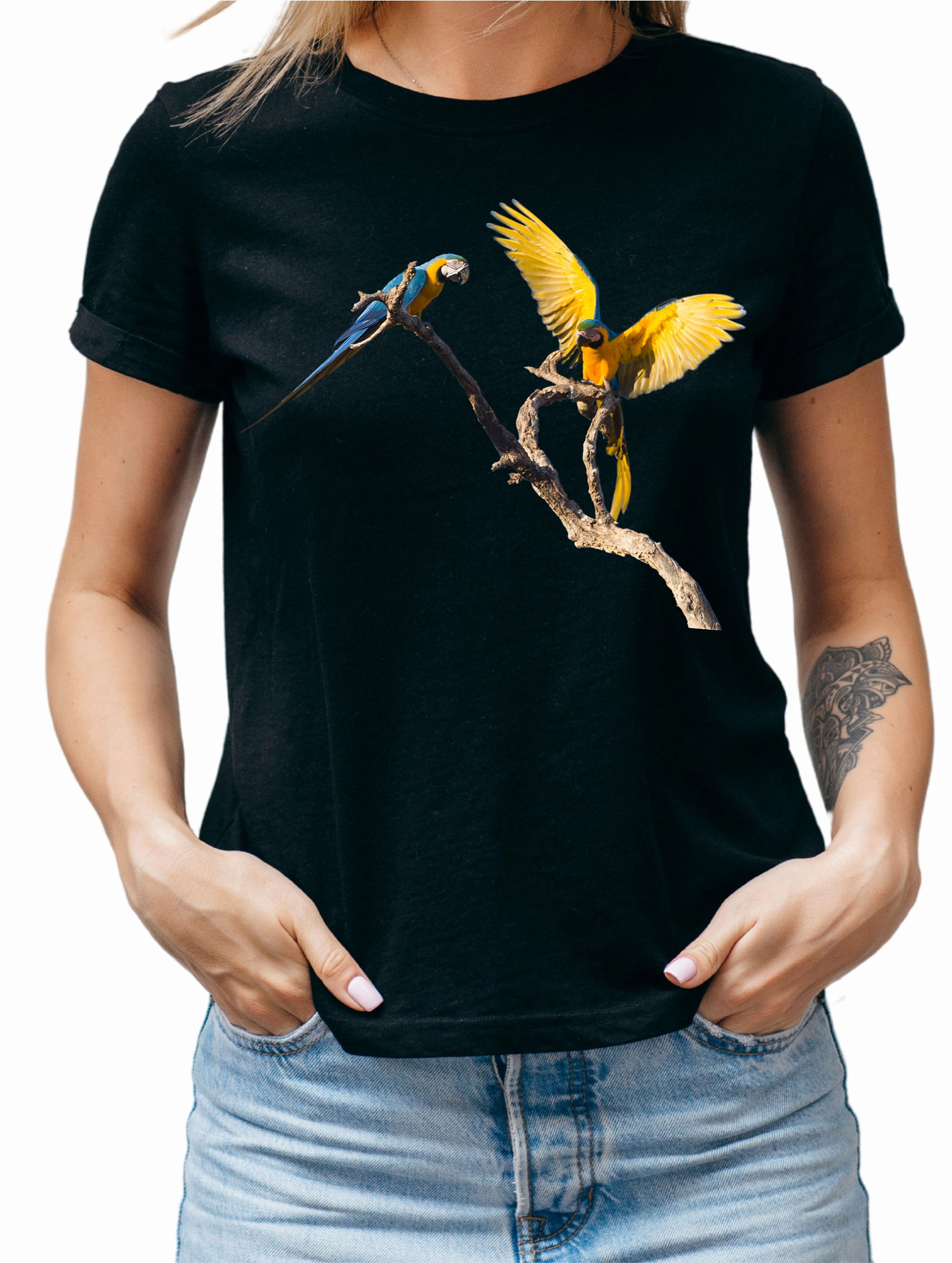 A estampa da arara canindé celebra a beleza vibrante das aves tropicais, permitindo que você expresse sua alegria e amor pela natureza. Consulte a tabela de medidas nas fotos para garantir que você encontre o tamanho ideal!